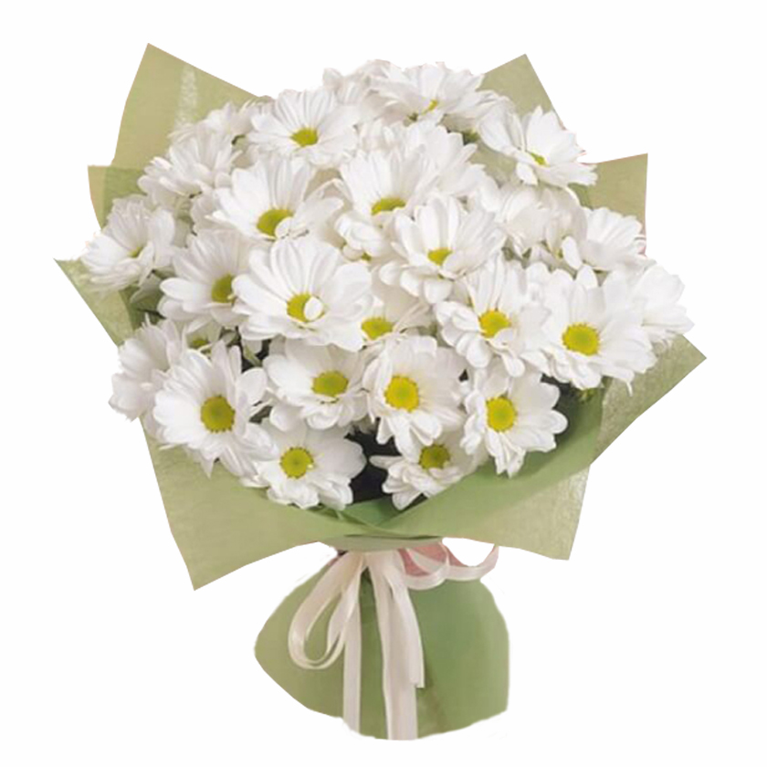 Букет состоит из 7 веток белой хризантемы, красивая упаковка.