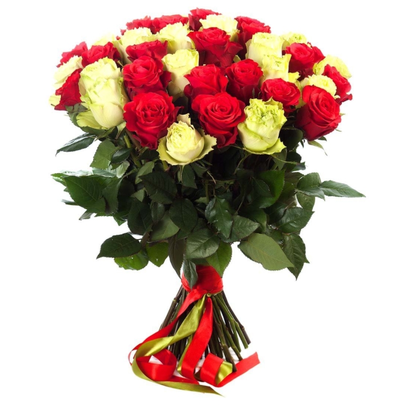 Букет из 45 белых и красных роз